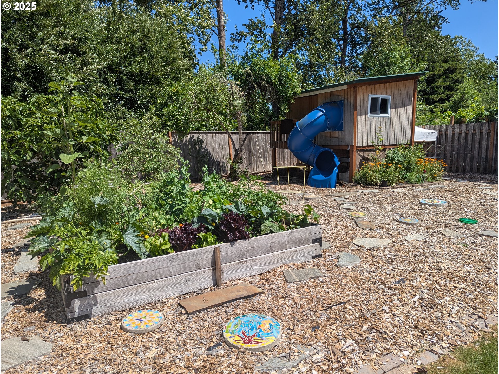 This beautifully maintained 3-bedroom, 1-bath home combines comfort, character, and convenience in a desirable Northeast Corvallis neighborhood. The updated open-concept kitchen - dining - living area creates an inviting space perfect for everyday living. The kitchen features warm wood countertops, modern cabinets, open shelving, stainless steel finishes, filtered water at the sink. Cork flooring runs throughout the home for a warm, cohesive feel. The remodeled bath offers waterproof vinyl flooring, and a clean subway tile finish. Additional updates include fresh exterior paint in 2025, new lighting and ceiling fans throughout, brand new water heater -just installed, plus a newer roof installed 4 years ago. The attached 1-car garage offers easy parking and extra storage as well as additional parking in the drive with space for 3 more midsized vehicles or an RV. Outside, you’ll find a spacious, beautifully landscaped backyard designed for relaxation and play. Enjoy a large above-ground playhouse and slide with a chicken run beneath, raised garden beds, fruit trees, berries, and a vibrant patch of perennial flowers. Enjoy the convenience of being within blocks of Village Green Park and close proximity to schools and shopping. This move-in-ready home is an exceptional value in a sought-after area.